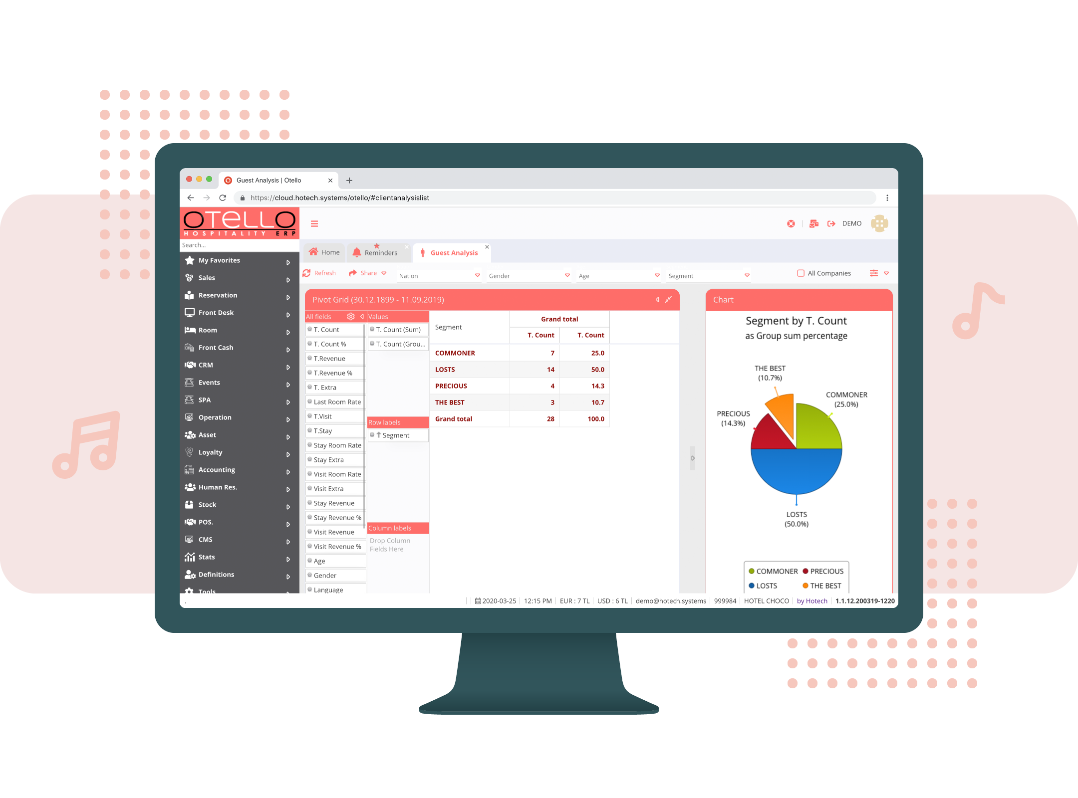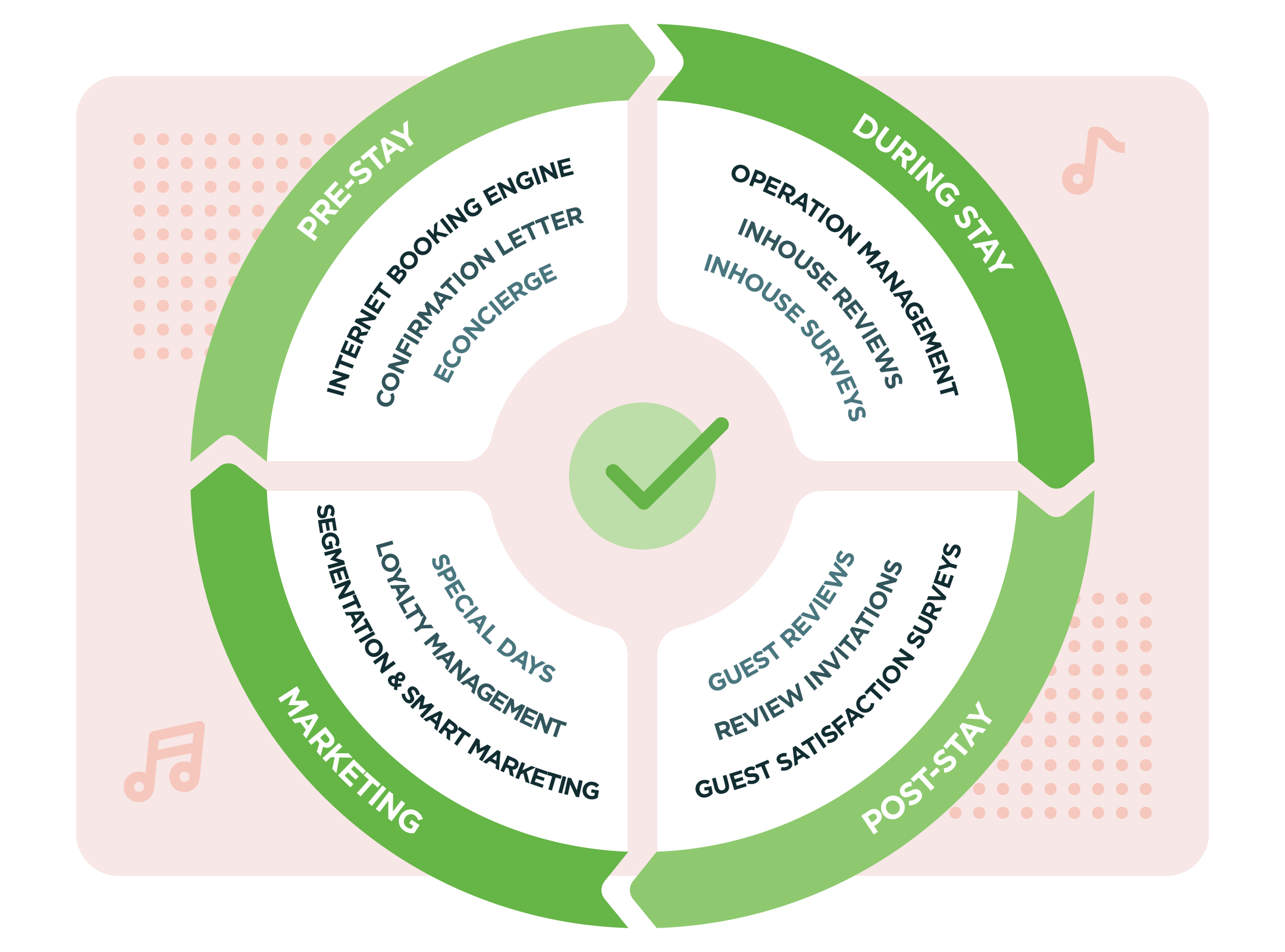 Manage all kinds of data about your guests, easily increase guest satisfaction by following your guests' footprints and increase your revenue by using a completely integrated system